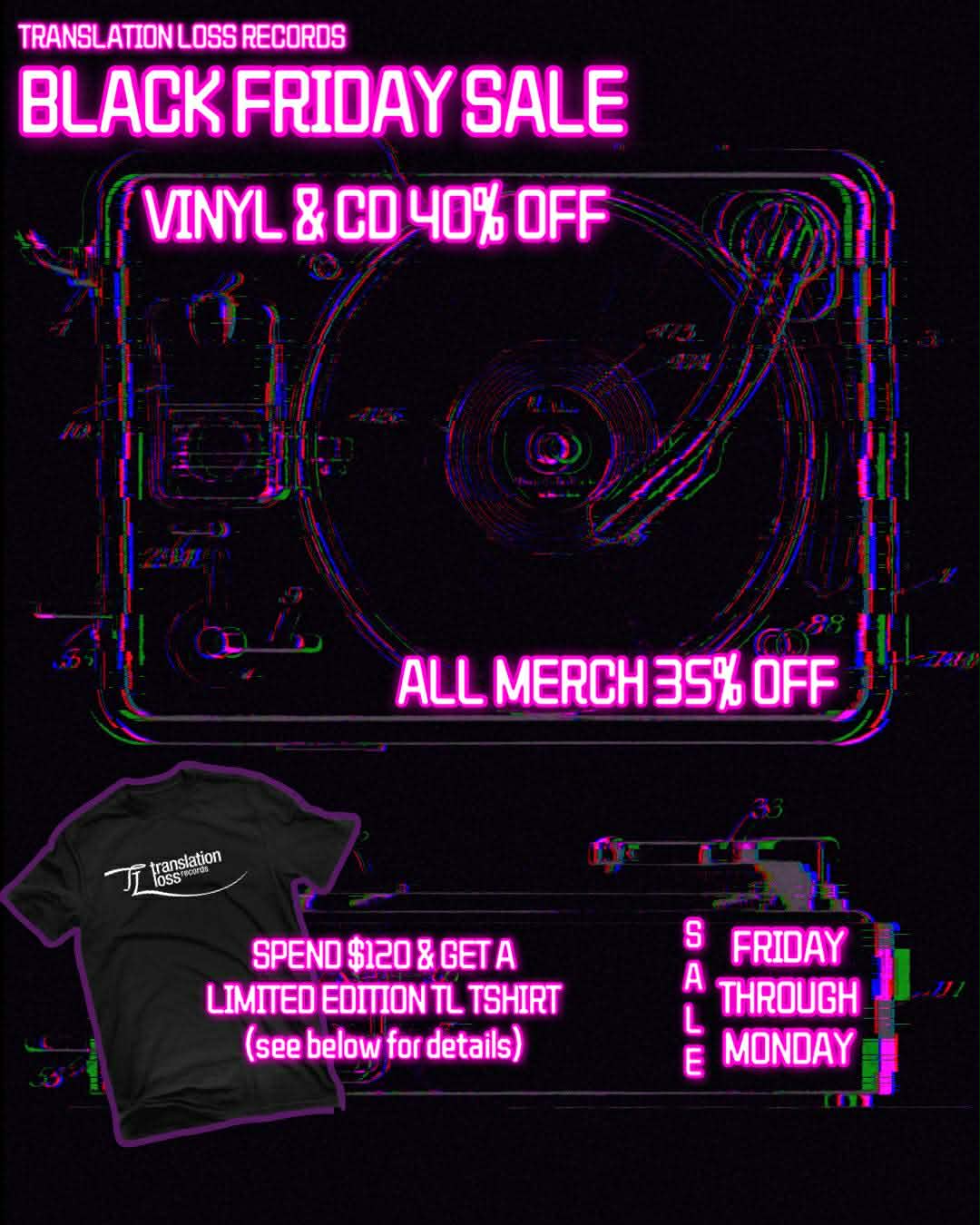 **Spend $120 (not including tax/shipping) and get a FREE Translation Loss Records “Original Logo” T-shirt! Just add the “Original Logo” T-shirt to your shopping cart and use the code “blackfriday” when